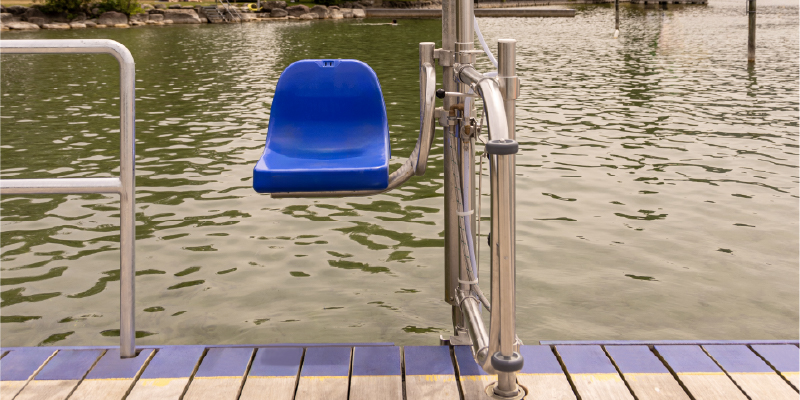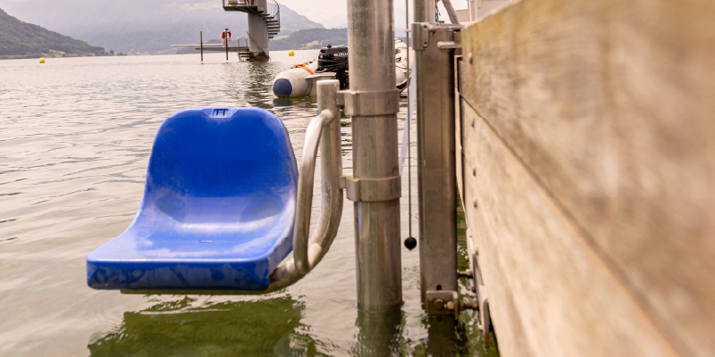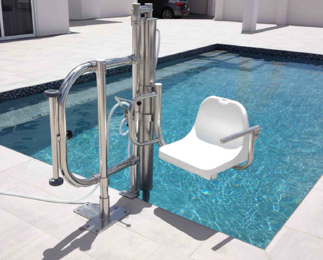 Con el elevador Stannah puedes entrar y salir del agua sin asistencia, gracias a su funcionamiento sencillo y autónomo.